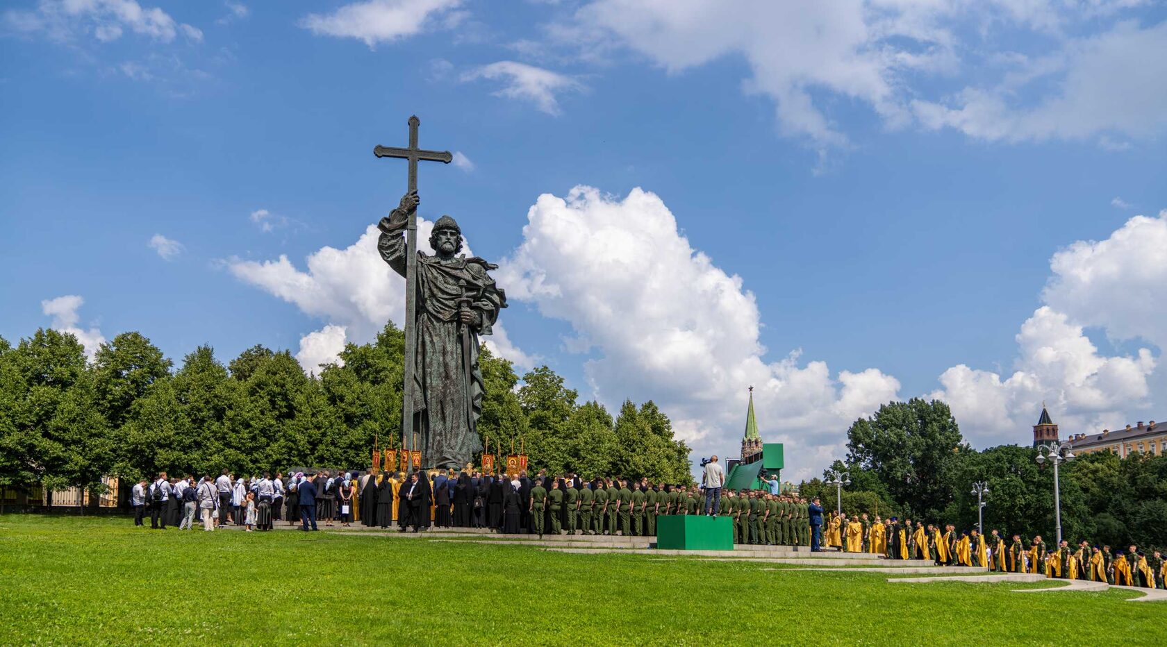 28 июля 2025 года, в день памяти равноапостольного великого князя Владимира, день церковно-государственного праздника Крещения Руси, Святейший Патриарх Московский и всея Руси Кирилл совершил молебен у памятника святому князю Владимиру на Боровицкой площади в Москве. По окончании богослужения Предстоятель Русской Православной Церкви обратился к верующим с Первосвятительским словом.